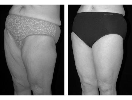Als de huid ter hoogte van de binnenkant van de dijen gaat doorzakken en onesthetische plooien gaat vormen, kan deze huid weggenomen worden. Het litteken wordt in de liesplooi geplaatst. De ingreep wordt vaak gecombineerd met een liposuctie, indien eveneens een teveel aan onderhuids vet dient te worden verwijderd.
